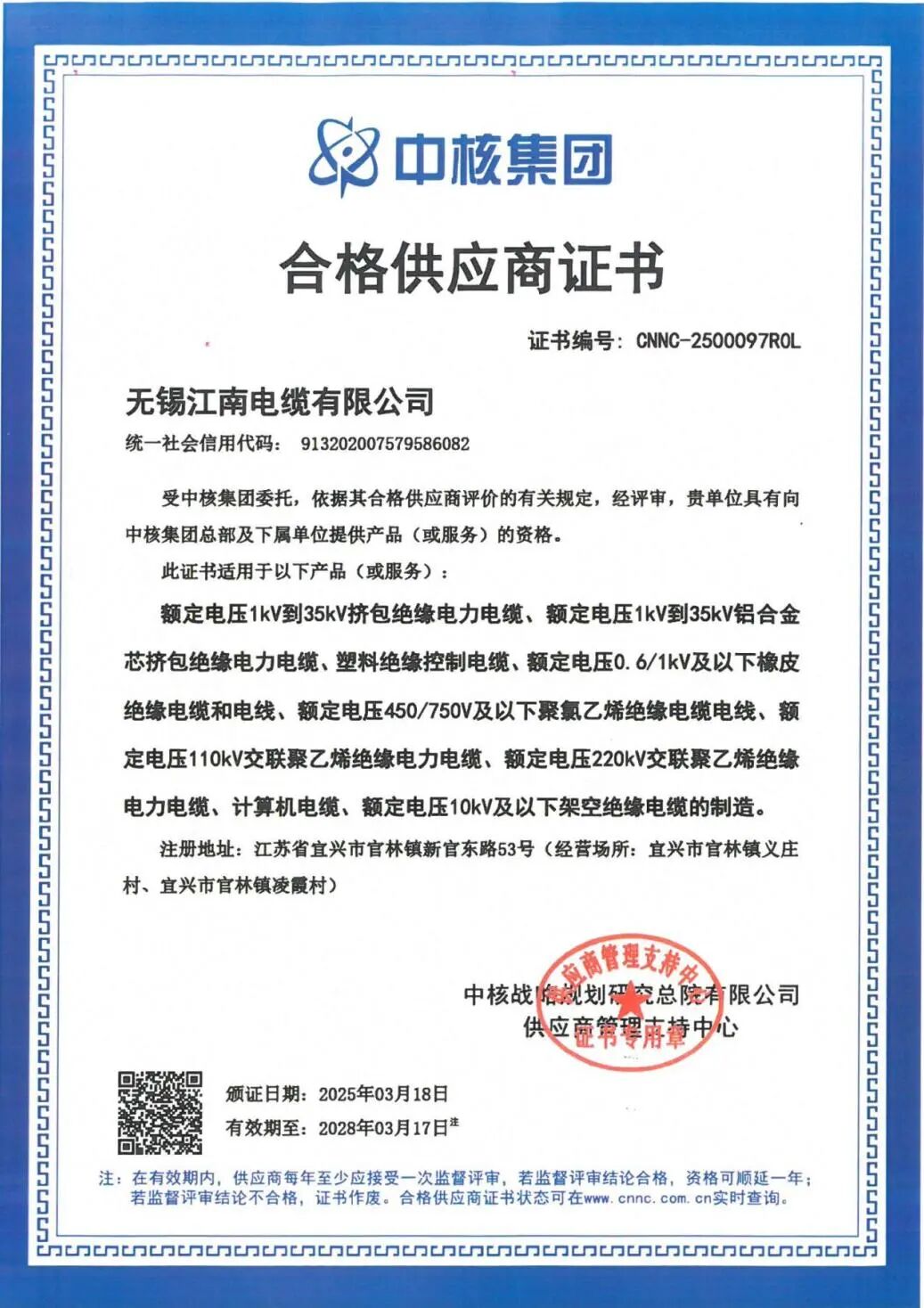 【誠信筑基 匠心領航】江南電纜榮獲2024年度省級守合同重信用企業